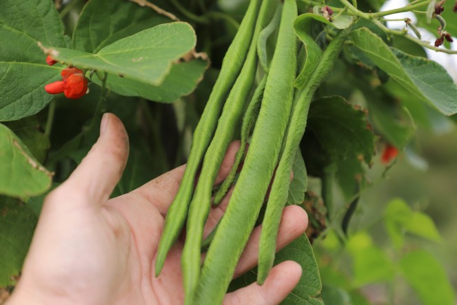 After a shaky start the runner beans are flowering like mad and producing. I planted out hardened off young bean plants at the end of May as I usually do but they really struggled to get going due to the weather at the time which was rather warm and probably lack of water. I tried sowing seed direct around each hazel pole late June which worked really well, I thought the mice would get the seed but luckily they left mine alone. I did the same for the Borlotti beans which also struggled to get going earlier on in the year, they too responded well to direct sowing. I’ve never had problems growing beans before so this was a new learning curve for me. In a funny sort of way this has worked out better because I didn’t have a glut of runners to contend with at the height of summer and my bean plants are stronger than they usually are. I’ve always worried about sowing beans direct but I think I’ll try it again next year.