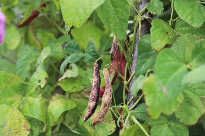 The Borlotti beans are beginning to dry out on the plants now, you can tell when the drying process begins by the pod colour which changes from shocking pink to deep purple. I will begin picking the dry pods once the leaves start dying back and allow them to continue to dry at home in the greenhouse before podding and storing.