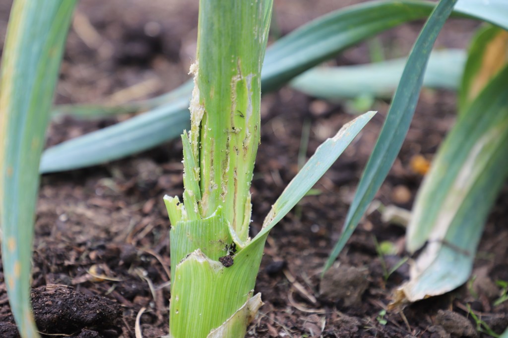 I noticed my leeks started to look poorly recently (they have a touch of leek rust but that’s pretty standard for my allotment site), they’re shrivelling before my eyes with damaged stems and dying leaves. I had a good look at them and poking around revealed some rather yukky looking culprits.
