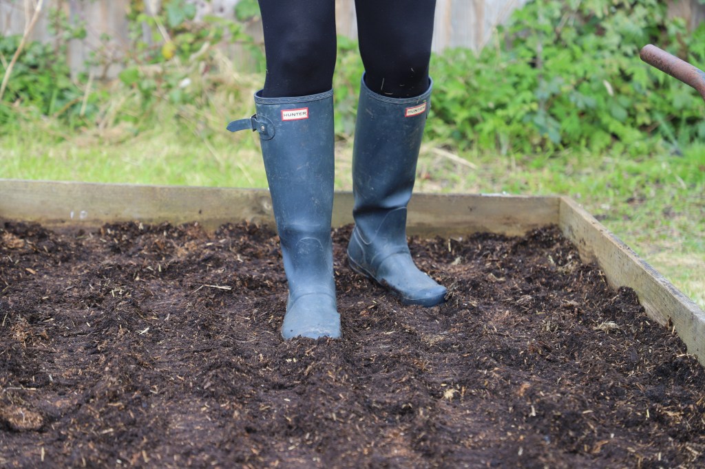 Treading the compost between each barrow load helps to firm it and you’ll get lots more compost in if you do. Compost doesn’t compact so it’s perfectly fine. Go on, have a little dance on your allotment!