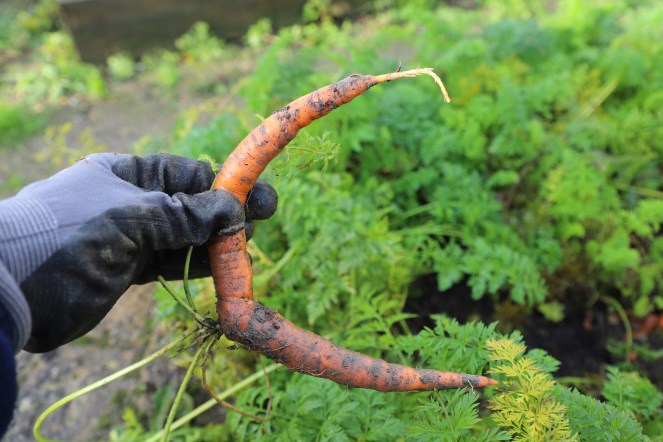 Whenever I pull wonky carrots from the ground I can’t help but smile at the weird and wacky shapes, sometimes a childish giggle escapes from me if I find one to be somewhat risque.