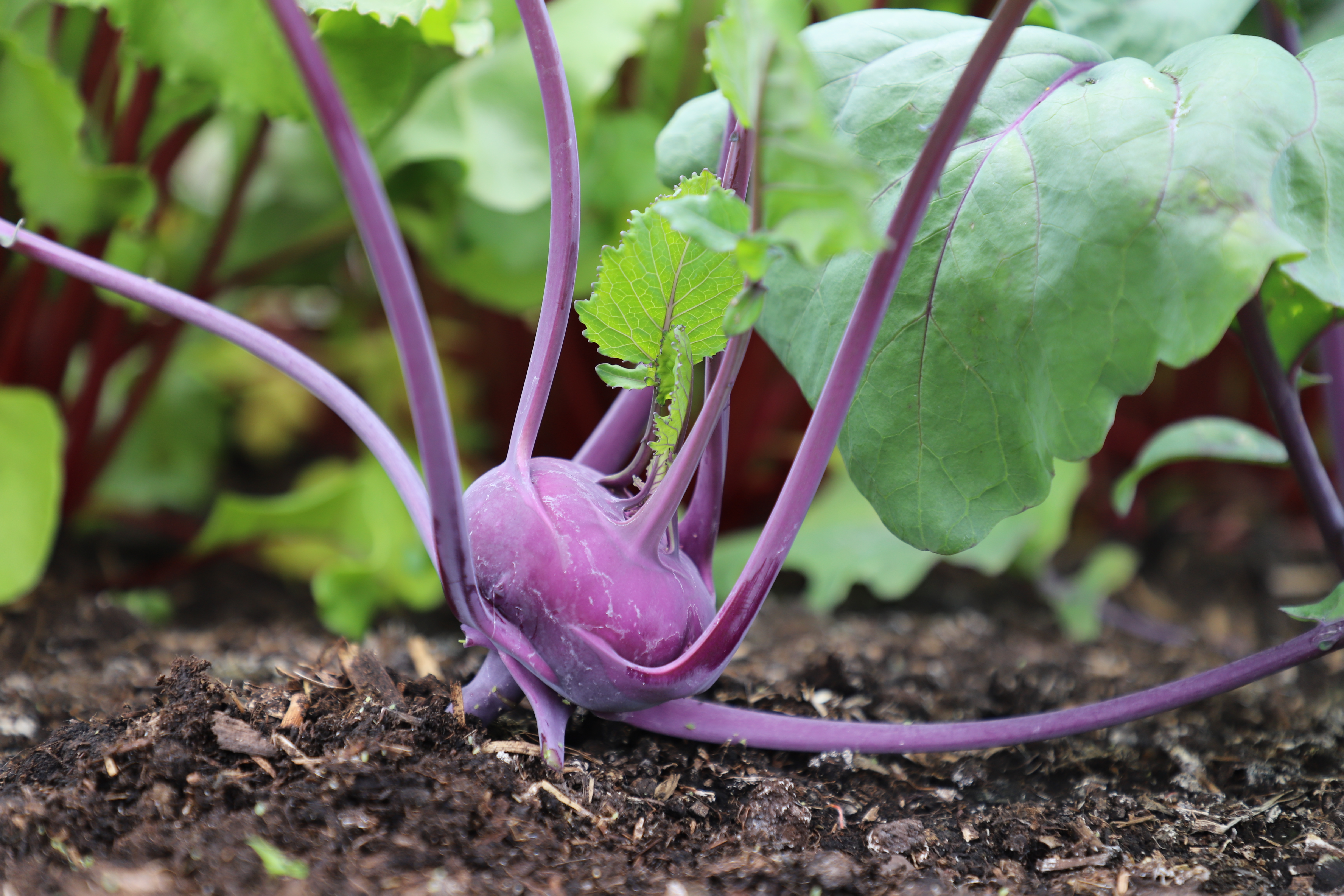 Kohl Rabi are swelling nicely, I picked a couple today for a slaw. Despite their alien appearance I think they’re a beautiful vegetable, just look at the colour on these purple ones!
