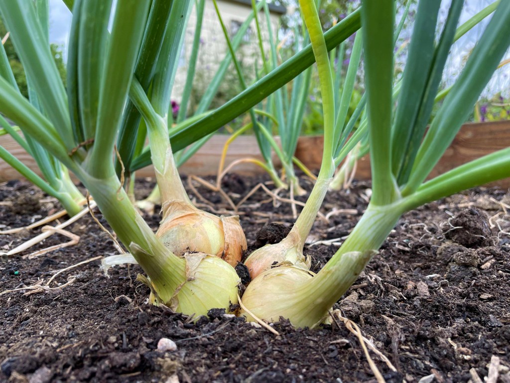 I haven’t done badly with the onions, better than last years for sure. I grow mine from seed and multi sow in modules (around 5-7 seedlings per module) then plant out as clumps. I pull the smaller immature onions to use in salads as you would spring onions and leave the rest to bulb up. They don’t grow very large because of this, which is fine, but it does mean you get more onions this way especially if you are short on growing space.