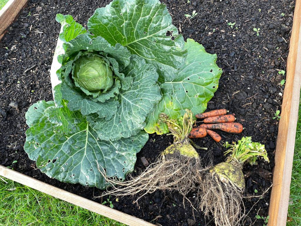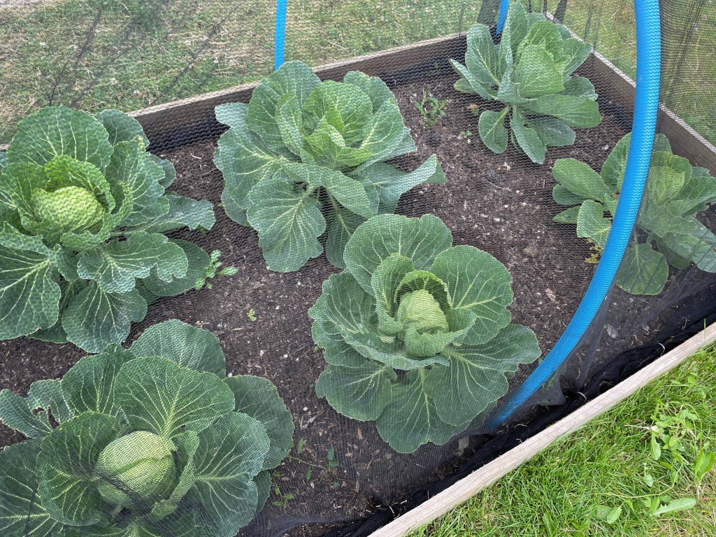 I have enjoyed regular little pickings of outer leaves and now the cabbages are starting to heart up.