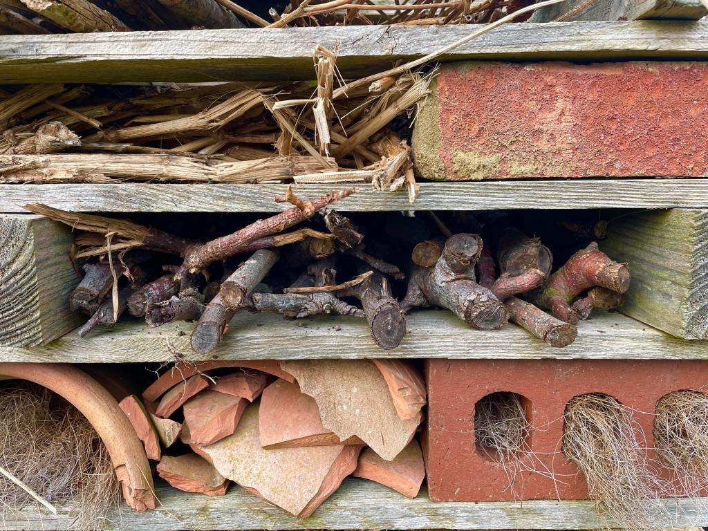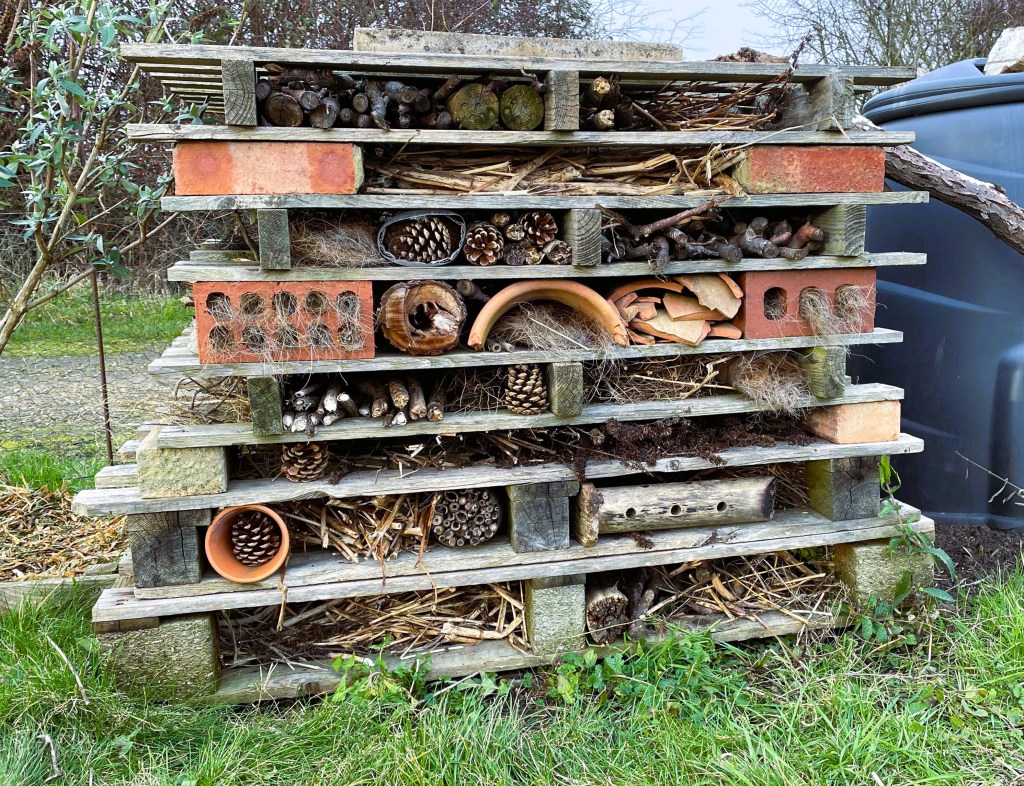 You can build a bug hotel at any time of year and part of the fun is collecting the natural materials to fill it – a great project to do with children. Things to use in your bug hotel could be: leaves, pine cones, twigs, hollow stems and dry plant material such as grass etc. You could also include broken pots, roof tiles, air/engineering bricks, drilled blocks of wood or logs, rolled cardboard and hollow bamboo canes.