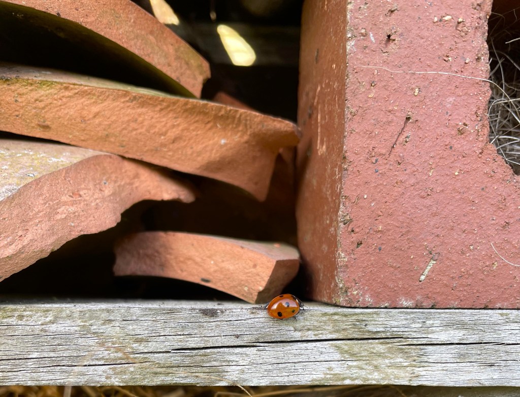 - Ladybirds, beetles, spiders etc: Dry leaves, pine cones, bunches of twigs, straw and broken pots