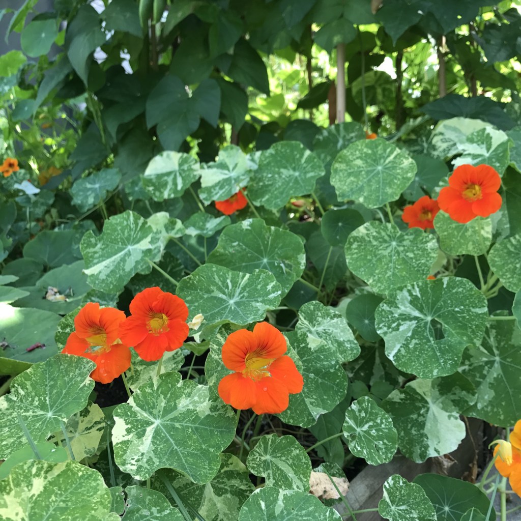 Nasturtiums are the perfect allotment flower. Super easy to grow, the sprawling habit will cover ground quickly and suppress weeds. Flowers and leaves are edible with a spicy peppery flavour, great for adding colour to a salad. Seed pods are edible too (best when green) and can be pickled and used as a substitute for capers.