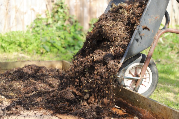 Treading the compost between each barrow load helps to firm it and you’ll get lots more compost in if you do. Compost doesn’t compact so it’s perfectly fine. Go on, have a little dance on your allotment!